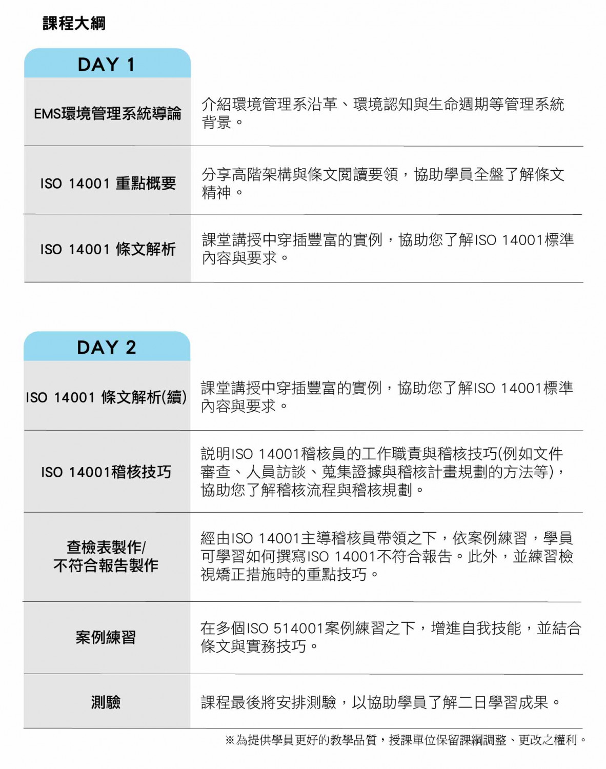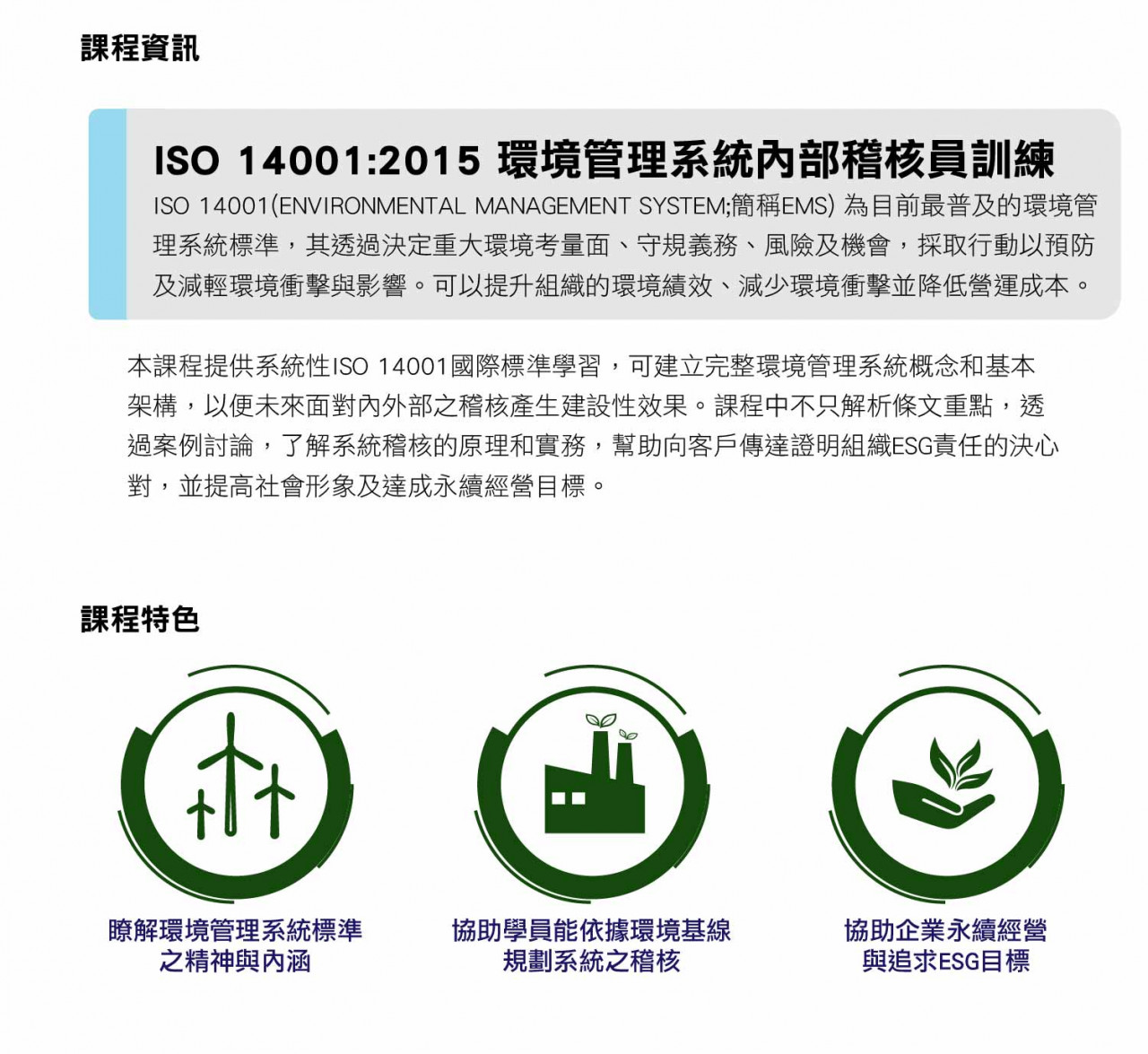 ISO 14001:2015 環境管理系統 內部稽核員訓練